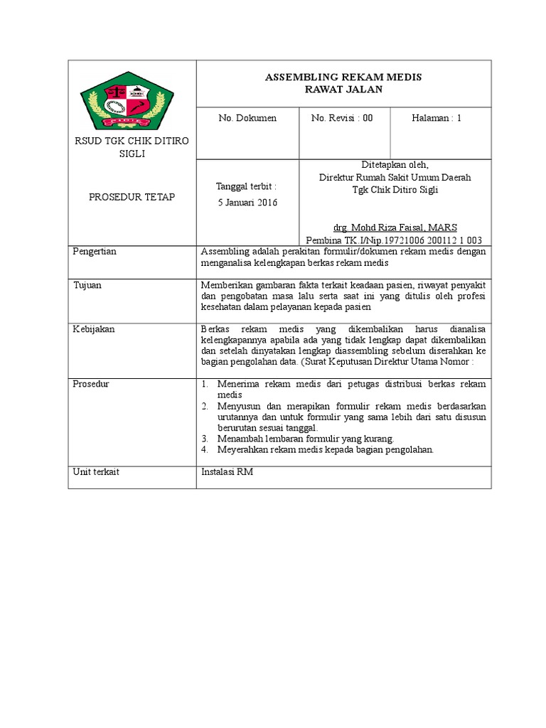 Sop Assembling Berkas Rekam Medis Pdf